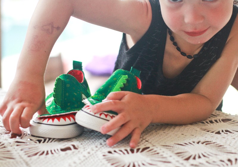 This little one is going to be doing a couple days of preschool this year, and he’ll be facing it with ferocious shoes that screamed “Dash.”